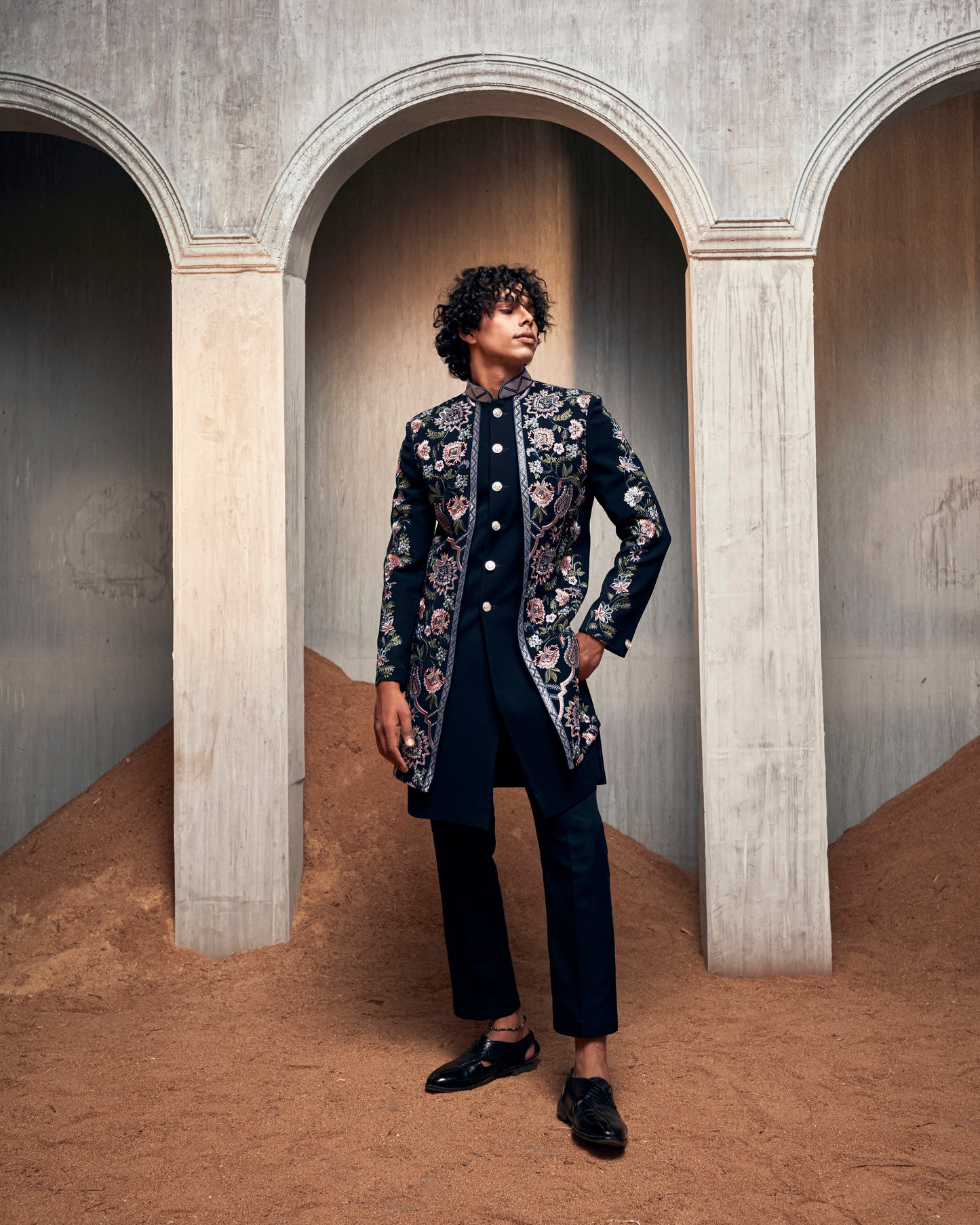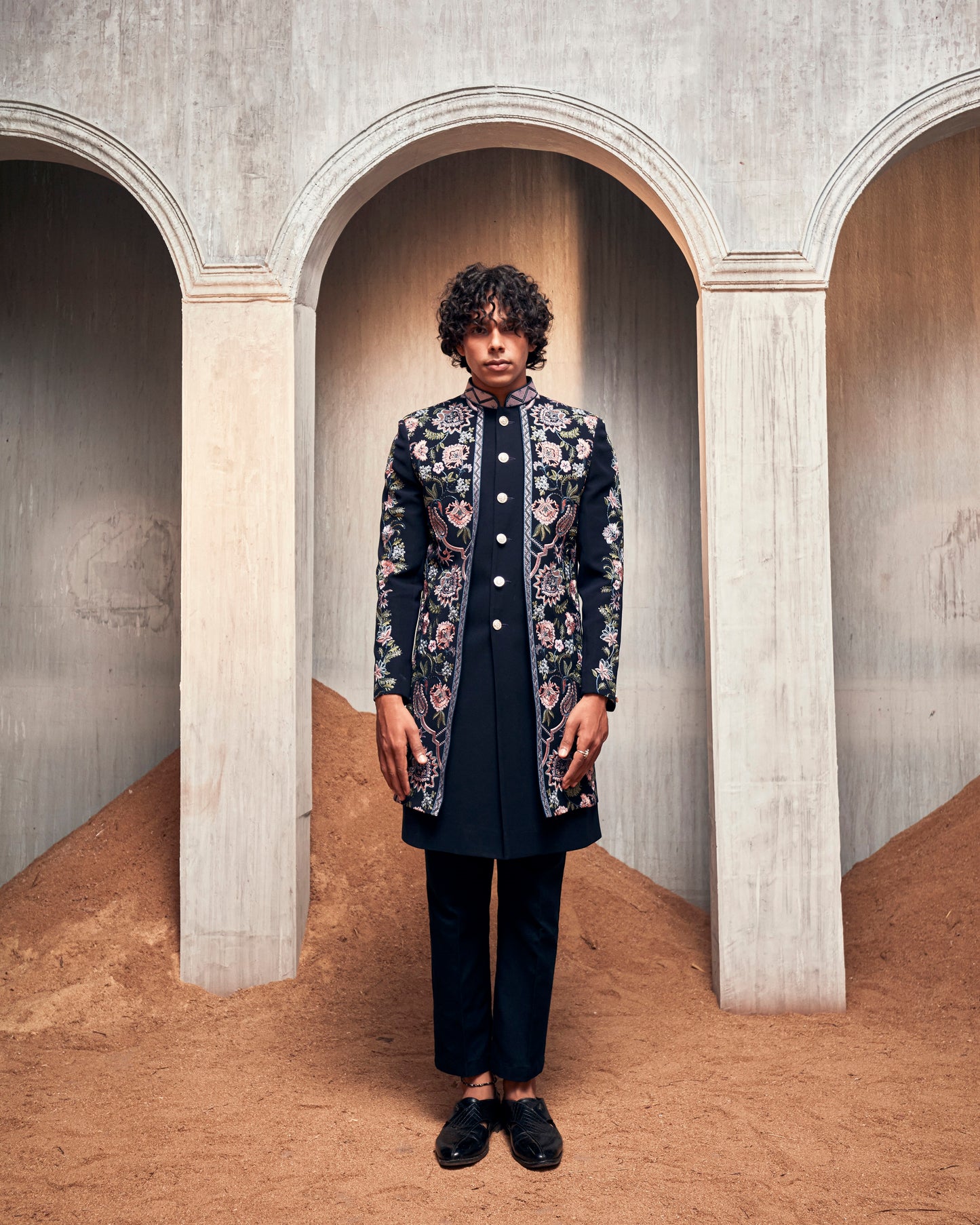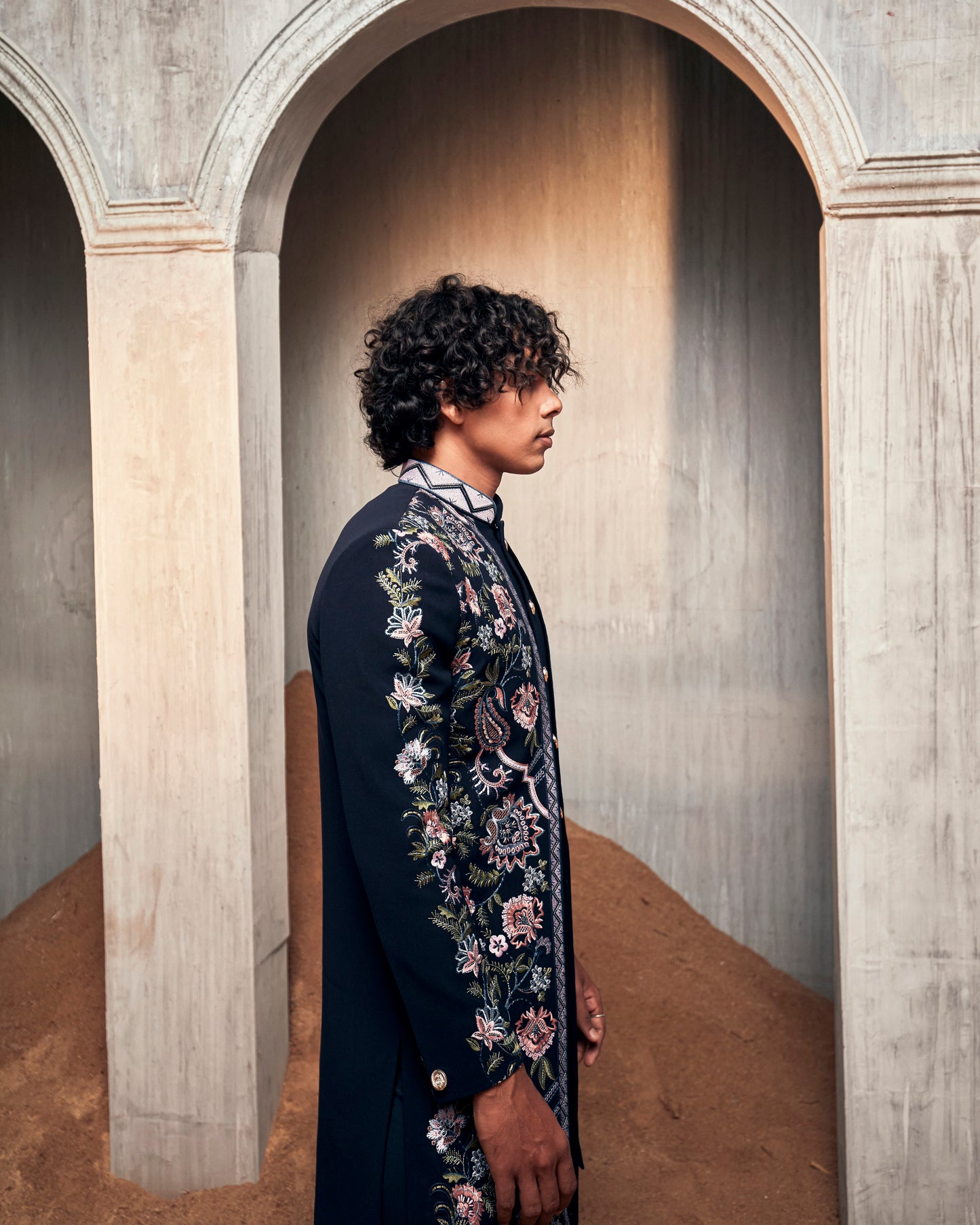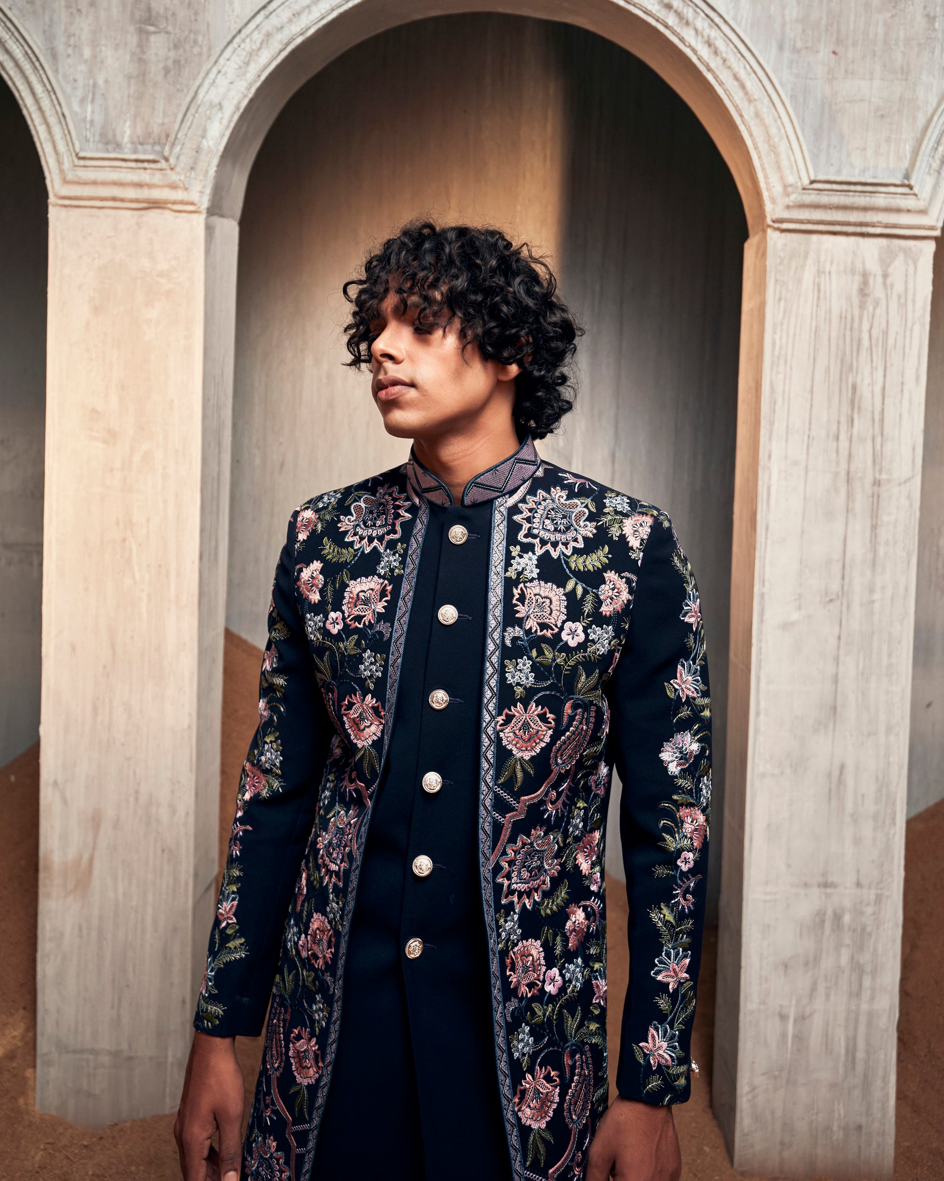 Navy Pintucked Floral Indo Set