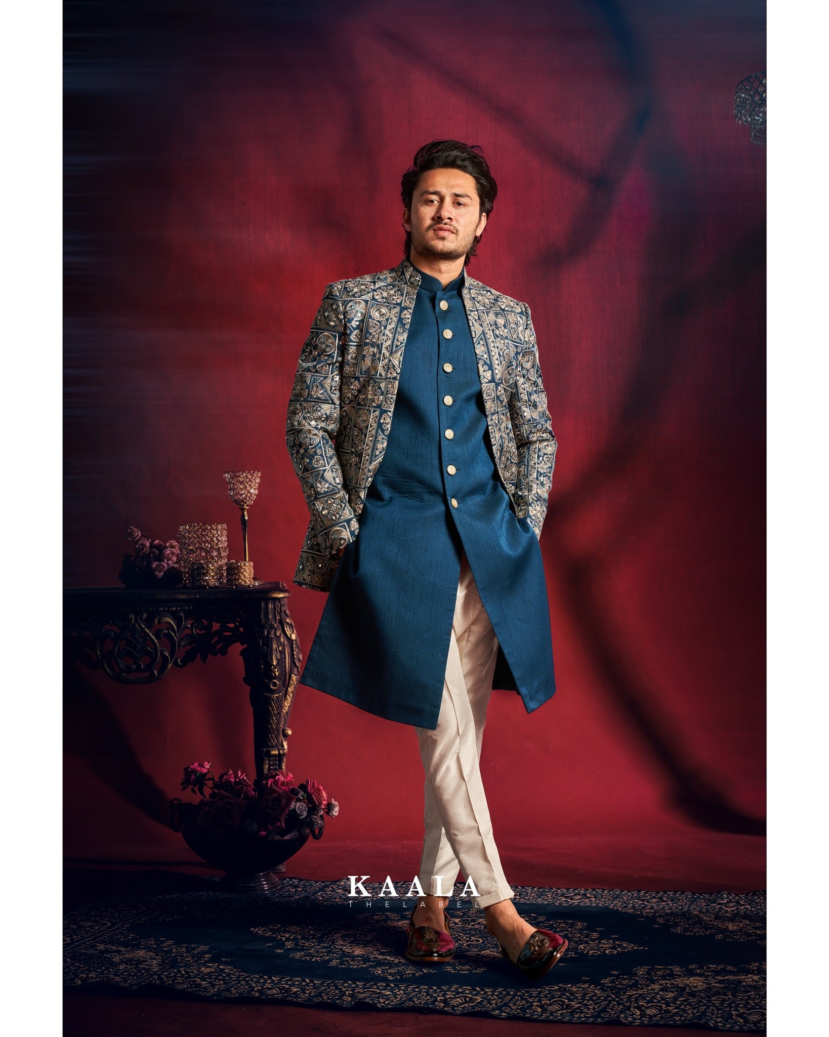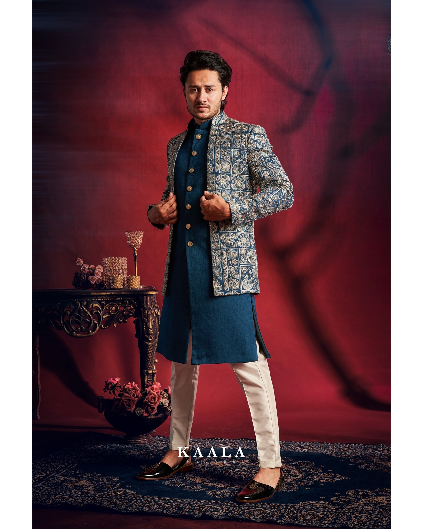 Teal Embroidered Indo Set